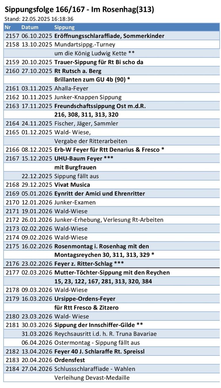 Sippungsfolge - Vereinsabende aktuell